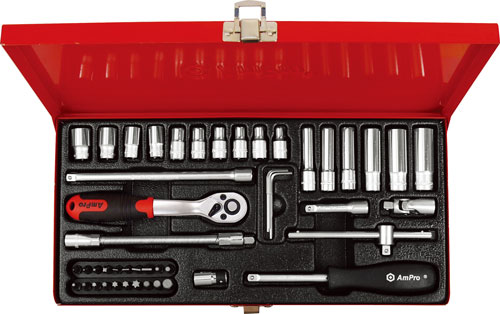 Приобрести T45012 Набор головок, бит и аксессуаров 1/4",48 предметов от компании AmPro (Тайвань) из раздела Наборы инструмента в металлических кейсах