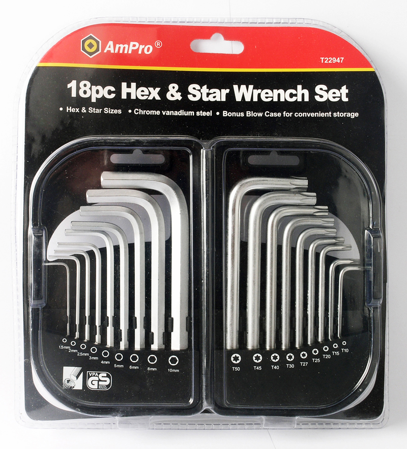 Приобрести T22947 Набор длинных Г-образных 18 предметов (T10-T50; М1,5-М10) от компании AmPro (Тайвань) из раздела Шестигранники по цене 2 134 рублей.