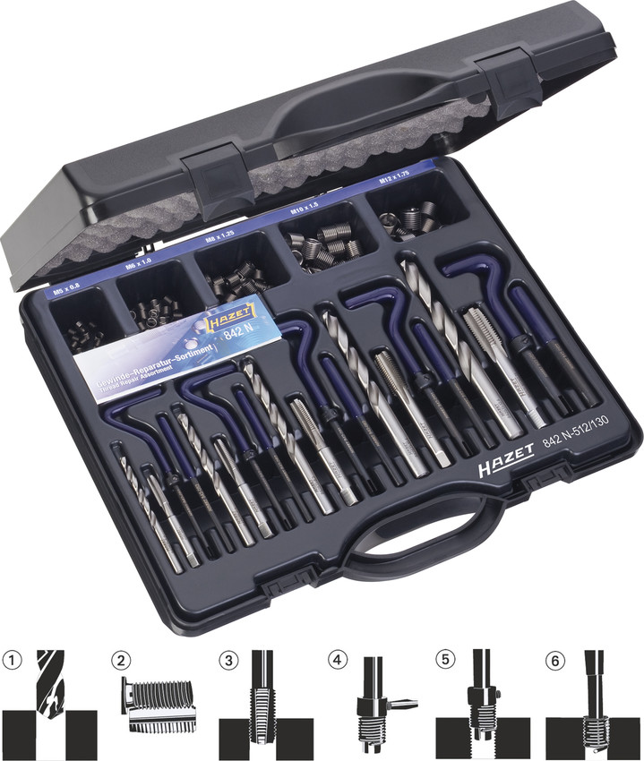 Набор для ремонта и восстановления резьбы Hazet 842N-512/130 купить в Якутске и других городах России