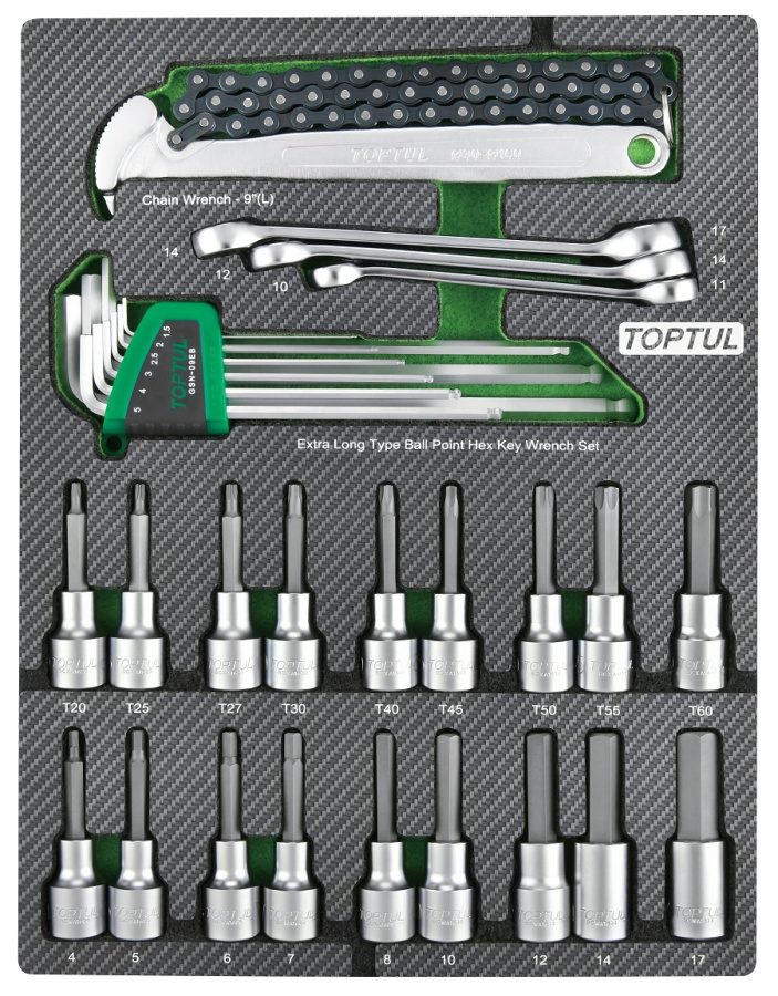Набор торцевых насадок, шестигранники Г-образные и разрезные ключи, 31 пр. в мягком ложементе TOPTUL GEB3109 купить в Якутске и других городах России