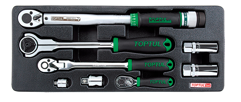 Набор трещоток 1/4", 3/8", 1/2", динамометрический ключ 3/8" 20-110 Нм, переходники и свечные головки, 8 предметов в ложементе (B) TOPTUL купить в Якутске и других городах России
