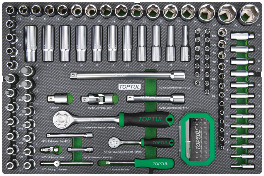 Набор головок и аксессуаров 1/4" и 1/2" 6-гр.,133 пр. в мягком ложементе TOPTUL GEDD348 купить в Якутске и других городах России