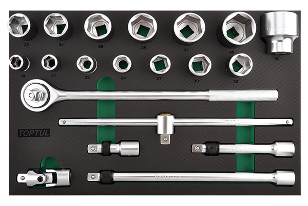 Набор головок и аксессуаров 3/4" 6-гранных 19-50 мм, 20 предметов в мягком ложементе (D) TOPTUL GVD2010 купить в Якутске и других городах России