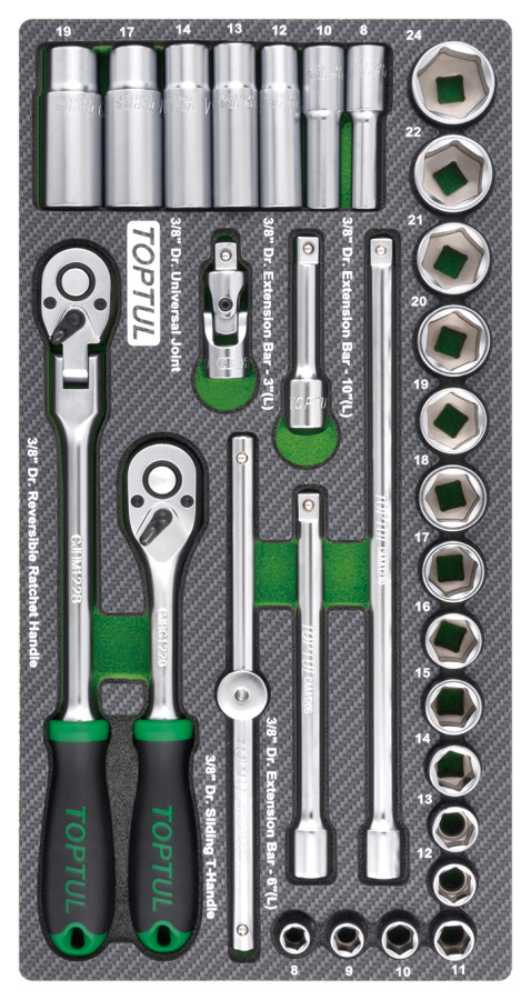 Набор головок и аксессуаров 3/8", 30 пр. в мягком ложементе TOPTUL GEA3005 купить в Якутске и других городах России