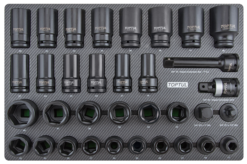 Набор ударных головок 3/4'' 17-46 мм короткие и длинные, 34 пр. в мягком ложементе (D) TOPTUL купить в Якутске и других городах России