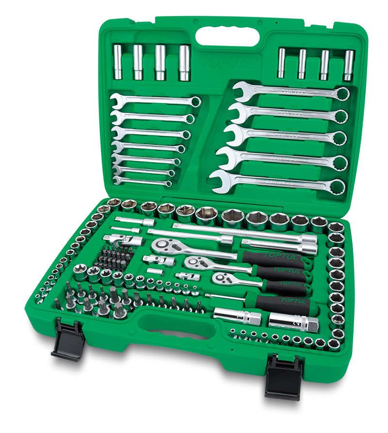 Набор инструментов в чемодане 1/4", 3/8", 1/2" 6-гр. дюйм и метрика,130 предметов, TOPTUL
