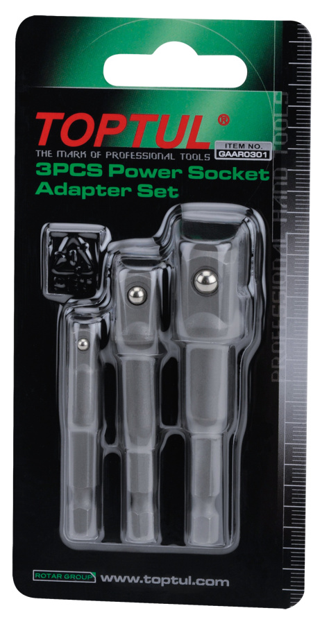 Приобрести Набор адаптеров для торцевых головок 1/4", 3/8", 1/2", 3 предмета TOPTUL GAAR0301 от компании Toptul (Тайвань) из раздела Адаптеры и переходники по цене 347 рублей.