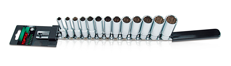 Набор удлиненных 12-гранных головок 3/8" на клип-планке 7-21 мм 13 предметов TOPTUL