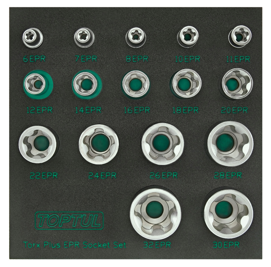 Набор торцевых головок TORX Plus EPR 1/4",3/8",1/2" 5-ти лучевые, 6EPR-32EPR, 16 пр. на ложементе TOPTUL GABF1601 купить в Якутске и других городах России